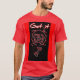 My 11 yo wore adult XL (5’7” 165#). The 8yo is small framed. She wore adult small and tied it in the back. Grandma wore adult large with long sleeve shirt underneath. Tall girl adult medium. Dark haired male adult large. Good quality dark Heather gray, Gildan brand shirt. -it was next up from basic choice and cost about $20 per shirt. Not too thick or thin. Washed and dried well, no major shrinkage. Not see-through. Can wear a bra under it fine. Screen print is just as shown and well done, front and back.