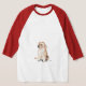 I bought the Men's Basic 3/4 Sleeve Raglan T-Shirt, White/Navy. It arrived on time for a gift and is of a great quality and fits perfectly! So cute! Zazzle has done it again! The printing was clear and filled in solidly.