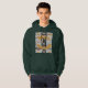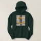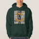 Green Hoodie. Moo Alfa Wizard Nerd In Yellow-Orange Print surrounding a man's face with a Wizard Hat On. Gray Background.