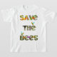 Un message fleuri pour inciter les lecteurs à sauver les abeilles. Deux petites abeilles très mignonnes tournoient autour des fleurs des champs. À flourished message to the viewers to save the bees. Two very cute little bees fly around field flowers included in the message letters