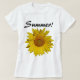 Yellow sunflower with seeds beginning to ripen. Text above reads "Summer!"