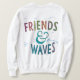 This t-shirt design captures the spirit of friendship and love for the ocean. The text "Friends & Waves" is displayed in a fun, multicolored font, with the "&" symbol cleverly transformed into a wave or incorporating a small wave illustration. The vibrant colors evoke a sense of summer fun and endless adventures shared with friends.