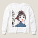 A stylish white long-sleeve shirt featuring a minimalist illustration of a girl surrounded by leaves, birds, and soft nature elements. The blue palette and hand-drawn art give it a calm, artsy, and modern aesthetic. Perfect for creative fashion lovers, cottagecore fans, and anyone who loves unique graphic apparel. Great for fall outfits, gifting, and Pinterest-inspired wardrobe ideas.