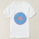 Mens T-shirt with hand-drawn mandala design. Blues with pink centre to highlight.