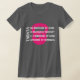 My overall review is that the T-shirt is nice, it fits true to size however the font is significantly smaller than advertised and you can't read it. The printing is unreadable and there is a strain to read it. It does not look like the advertised product. Maybe the shirt color is darker or a larger more visible font should have been used. Photos with and without flash and font is barely legible.