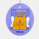 Tabby kitten angel memorial ornament. Cat has wings and a halo. Design on light brown background. Add your own cat's name to personalize. Original design by S. Fernleaf.