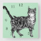 Tabby Cat Cats Art Animal Mint Green Decor Square Wall Clock