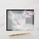 A color pencil and pastel drawing of a one eyed smoke tabby cat adorns this customizable stationary!