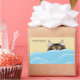 Tabby Cat Peeking Blue Funny Rectangular Sticker