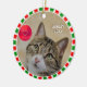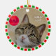 Custom tabby cat photo and green red frame Ornament. Text can be personalized.