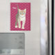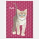A tabby cat can be recognized by a distinctive 'M' shaped marking on its forehead. It also has stripes near its eyes, on its cheeks, back, legs and tail. The background, image and text can be personalized. Original artwork by W.B.