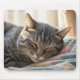 Tabby Cat Sleeping On Old Quilt Mouse Pad