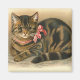 Designed by Susan Epps Oliver. Sweet picture of a young tabby cat wearing a red ribbon.