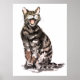A yawning tabby cat painted in in sumie technique with sumi ink and watercolor on rice paper.