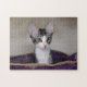 Tabby Kitten in a Purple Bed Jigsaw Puzzle