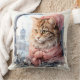 Tabby Kitten Pink Frilly Clothing Throw Pillow