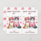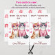 This cute Valentine postcard is designed to be easily cut into two cards. The image on each side is of two adorable tabby cats wearing heart shaped eyeglasses, and surrounded by pink hearts. All the text is easily customized. The back has a pattern of pink boho style rainbows and hearts. Perfect for elementary students to give to their friends at their school Valentine party, and economical, too! And teachers can also customize it to give out to students.