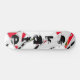 Diseño en base blanca y trozos rojos con letras negras. Agresivo y atrevido