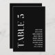 This customizable elegant Table five black and white template featuring an elegant modern font. Wedding Table Seating Cards will be a great addition to Wedding reception decor. Guest list is fully editable, so you can easily change guest names, just click 'Personalize this template'. Table number cards from 1 to 12 of same design also available.