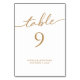 Table 9 Gold Calligraphy Personalized Wedding Table Number Card... Our "table 9" wedding table number card features elegant gold calligraphy script followed by the table number and the bride and groom's names and wedding date. Table numbers 1 through 12 are available in the same design and are sold separately.
