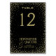 A black background table card with gold "faux glitter" confetti artwork that is ideal for a wedding, however, you can also change the text to suit any occasion. (Don't forget to order each card number individually, also you can change the background color too. ) Note this is a graphic art print and contains no messy glitter. Have a wonderful event!