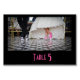 A casual wedding table card, A cute picture of a bride and grooms legs and feet. Wearing their fancy wedding attire, with casual running shoes. He has black sneakers and hers are vibrant bubblegum pink! The contrast of the black and white theme with the pink shoes really makes the image pop! The happy couple is standing in a diner with black and white checkered floors. Very retro fifties diner style theme.