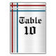 Table card red, white and blue ribbons for patriotic party or retirement party table number cards. Simple ribbons on white satin look background.