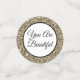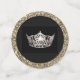 These table confetti pieces are a mix of Black and White double sided with well-wishing comments for your pageant's titleholders. Graphic of Gold glitter print grace both front and back around the edges. Simple, yet elegant design. Sample texts are "Wear your crown", "you are beautiful", "reach for your dreams" and the flip sides are the silver pageant crown. Customize this item or buy as designed.