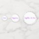 These table confetti pieces are a mix of Orchid Pinks and White and double sided with well-wishing comments for the bride and groom. Graphics of petite gray colored stars grace both front and back around the edges. Simple, yet elegant design. Sample texts are "Jason & Emily", "congrats", "Happiness"."Together As One", "Love", "Forever". Customize this item or buy as designed.