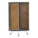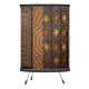 a great table lamp with african tribal textiles and indigenous austalian painting inspiration. bold and earthy, the shade is brown and black, orange and yellow.