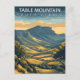 Capture the majestic beauty of South Africa with this stunning Table Mountain travel postcard! This captivating illustrated design features the iconic flat-topped Table Mountain, dominating the vibrant landscape of Cape Town. The stylized art beautifully showcases the rolling valleys and lush scenery leading up to this incredible natural wonder.