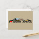 Part of our South African Landmarks collection, we have taken Table Mountain and it made it wild, With photos of various African wildlife in the shape of Table Mountain on this postcard. This one has the phrase I Heart South Africa in black text.