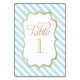 Personalize these elegant, blue striped themed table cards with your information.