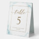 Elegant and versatile table tent sign with Table number on one side and Menu on the other. Less waste and less expense! Design with delicate dusty blue watercolor stains and golden elements. Hand written calligraphy details in gold. Ability to make text adjustments and changes by selecting customize further. ideal for weddings and special events. Modern and elegant design.