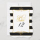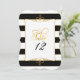 If you are looking for an elegant and inexpensive solution for your table numbers at your wedding reception, bridal shower or other formal event, these cards are a great design. You can personalize as many tables as you need - simply click on the template area, type in your table number (or name of table) and place it into your shopping cart. Repeat as many times as needed. A modern, black and white wide striped background with a thin golden border added is paired with a hand drawn scroll flourish divider element frame and a calligraphy script typography word art "Table" with elegant swirls in gold faux glitter.