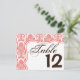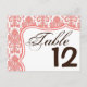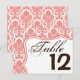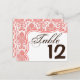 Table Number Card Coral White Damask Lace Print