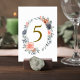 Bring a refined and cohesive look to your reception tables with this elegant wedding table number card, featuring a delicate wreath of soft peach florals, muted blue blooms, and airy greenery. The graceful oval design frames each table number beautifully, while the coordinating layout option with guest names adds a polished and organized touch.