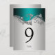 Very stylish, very vintage teal black and silver Table Card. Personalize with your own information. If you need to move the text, or change the size, font, or color, click Customize It. There is a matching Invitation, Enclosure Card, Thank You and RSVP card available: