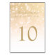 Elegant wedding "Table Number" design with Gold Bokeh Sparkle Lights and custom table number text.