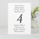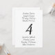 Custom plain table number cards to hang or display at the entrance to a wedding reception. Plain white cards with printed black text and table number in the center. List the names of guests above and below the number to direct them to their table.