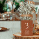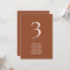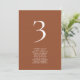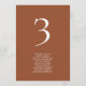 Table Number Names Seating Chart Terracotta Card. Edit you number for each table and add to your cart separately. Minimalist style. Same design is on both sides, use for a hanging display so guests can find their seat or display on each table. Easily personalise the table number and your guest names. The same design is on both sides and will update simultaneously as you change the words to your own.