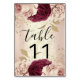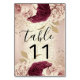 Table Number Pink Florals Rose Gold Marsala