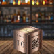 For restaurant, cafe, bar tables, Personalize and add your business logo, table numbers and QR code for your menu. A faux bronze looking background, black text.