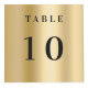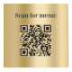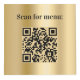 For restaurant, cafe, bar tables, Personalize and add your business logo, table numbers and QR code for your menu. A faux gold looking background, black text.