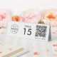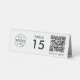 A simple custom white QR code resturaunt or cafe table tent table number double sided business sign template in a modern minimalist style which can be easily updated with your company logo, QR code and custom text.