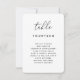 Place these seating chart cards at each table at your event. Pair with escort card to assist your guests in locating their seats.