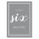 This design was created for smaller intimate wedding celebrations. Simple, minimalist and elegant Wedding Table Number SIX design features a contemporary design with a double frame border in crisp white on a trendy ultimate gray background. The design is chic and timeless. Personalize wedding table design with your wedding details in crisp white lettering and script. The back of the card is a duplicate of the front. Order one for every table with the individual table numbers.