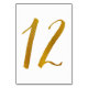 Table Number 12: This casual brush script table number card is set in a faux gold foil.