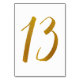 Table Number 13: This casual brush script table number card is set in a faux gold foil.