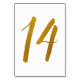 Table Number 14: This casual brush script table number card is set in a faux gold foil.